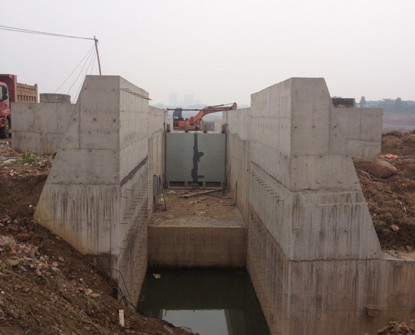 箱涵段全長720米,高8.65米,寬18米,分3孔,每孔凈高7.1米,凈寬5米,共60節(jié),是公司成立以來完成施工的最大結(jié)構(gòu)尺寸箱涵。按照傳統(tǒng)施工方法,每月僅能完成2~3倉砼澆筑,易受天氣影響,是該工程如期完成的關鍵節(jié)點,工期壓力極大。項目部集思廣益,開拓創(chuàng)新,首次在國內(nèi)項目范圍使用了鋼模臺車,每月可完成6倉砼澆筑。自2013年9月3日開始,經(jīng)過項目部全體施工人員的共同努力,至2014年11月23日下午完成箱涵砼工程全部砼澆筑,歷時446天,共計完成混凝土澆筑41000立方米,鋼筋制安2600噸,為公司類似項目施工積累了經(jīng)驗。