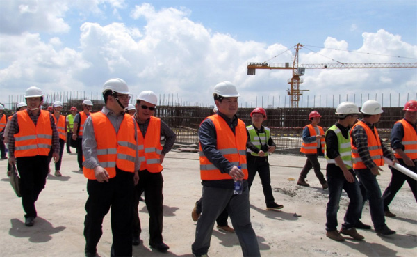上午11時,董事長王元旦一行在雙河二期會議室召開會議。項目經理彭紅軍、廖會文分別作了項目施工管理工作報告,詳細匯報了近期施工管理和項目進展情況。王元旦董事長首先對施工質量和項目進展的總體情況表示滿意,同時也告誡大家,成績只能代表過去,要繼續發揚不驕不躁、腳踏實地的優良作風。董事長特別強調,質量和安全是企業的命脈,要始終把質量和安全放在首位,進一步加強質量控制管理,加大力度排除施工現場的安全隱患,提高員工的安全意識,把質量控制和安全管理落到實處。項目班子表示,在公司領導的關心和支持下,項目部對雙河項目的圓滿完成更加充滿信心。