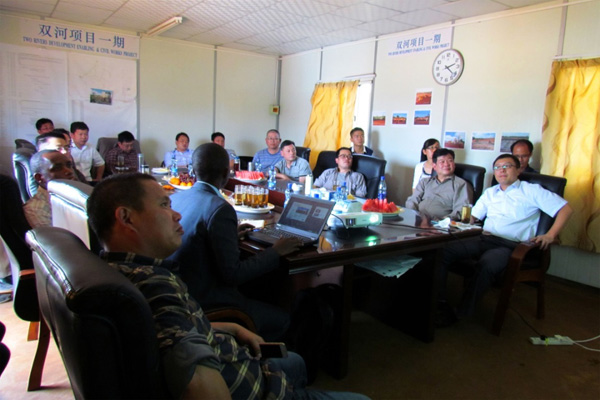 下午2時,在雙河一期會議室聽取了業主Centum投資集團代表做的題為“投資、發展、效益”的演講。隨后,中航技肯尼亞分公司副總經理吳迪做了補充,詳細介紹了雙河項目的股權結構,深入分析了雙河項目的投資環境,并對收益前景做了合理的預測。董事長王元旦表示對雙河項目充滿信心,相信與中航技的合作能帶來雙贏,希望雙方增強交流,進一步深化投資合作,實現互利共贏、共同發展的新局面。