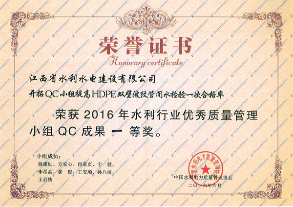我公司5項QC成果獲得2016年水利行業優秀成果獎