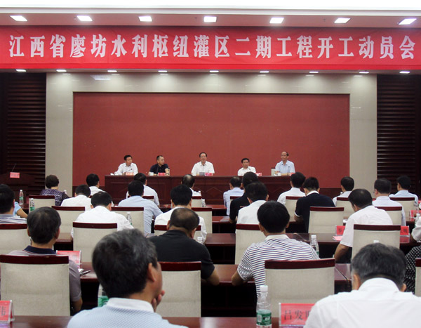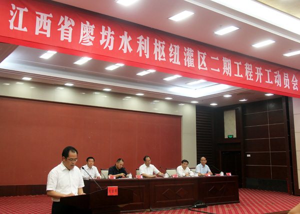 9月22日上午,廖坊水利樞紐灌區(qū)二期工程開工動員會召開。省委常委、常務(wù)副省長毛偉明出席并講話;市委書記肖毅主持,市委副書記、市長張鴻星致辭,水利部建管司副司長張嚴明、省發(fā)改委主任吳曉軍、省水利廳副廳長廖瑞釗參會并講話;公司總經(jīng)理徐洪良代表項目參建單位在會上作表態(tài)發(fā)言;省直有關(guān)部門領(lǐng)導,撫州市四套領(lǐng)導班子成員,撫州市相關(guān)單位領(lǐng)導及項目參建各方代表參加了會議。