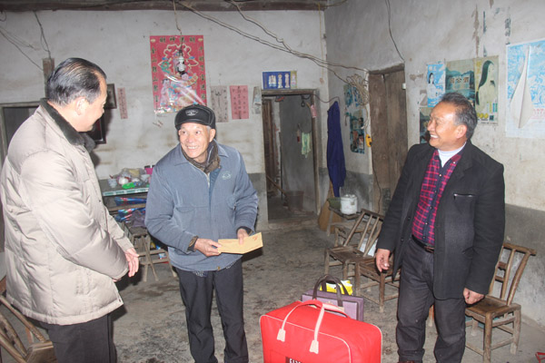 在貧困戶羅華妹家里,當(dāng)老人接過大米和食用油等慰問物品后,頓時眼含淚花,激動的拉著史主席的手說:“這么冷的天,你們能來看我這個老太婆,我真的很高興,共產(chǎn)黨的政策真好!”,史主席鼓勵羅華妹說:“要堅定信心,黨的政策很好,我們也會多想一些能改變家庭生活和增加收入的辦法,你們家里要積極配合黨委政府和村委會的工作,爭取早日脫貧致富。”