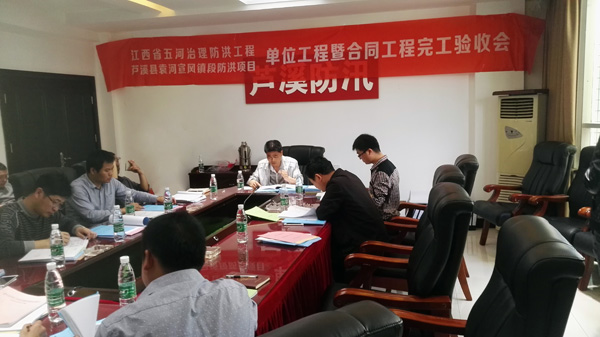 2017年4月19日蘆溪縣五河治理防洪工程項(xiàng)目部在蘆溪縣主持召開(kāi)了江西省五河治理防洪工程蘆溪縣袁河宣風(fēng)鎮(zhèn)段防洪項(xiàng)目單位工程暨合同工程完工驗(yàn)收會(huì)議。蘆溪縣五河治理防洪工程項(xiàng)目部、江西省水利規(guī)劃設(shè)計(jì)研究院、江西省建洪工程監(jiān)理咨詢有限公司、江西省水利水電建設(shè)有限公司、蘆溪縣宣風(fēng)鎮(zhèn)鎮(zhèn)人民政府和銀河鎮(zhèn)人民政府等單位代表參加了本次驗(yàn)收會(huì)議,并成立了單位工程暨合同工程完工驗(yàn)收工作組,萍鄉(xiāng)市水工程建設(shè)監(jiān)督管理站列席了本次會(huì)議。