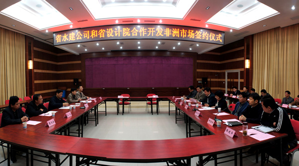 2013年11月13日,我公司與江西省水利規(guī)劃設(shè)計(jì)院合作開發(fā)非洲市場暨聯(lián)合成立“江西省水利規(guī)劃設(shè)計(jì)院埃塞俄比亞分院”簽約儀式在省水院會議中心舉行。江西省水利廳黨委書記、廳長孫曉山出席簽約儀式并作重要講話,我公司董事長兼總經(jīng)理王元旦、省水院院長孔俐麗分別致辭,并代表雙方簽訂戰(zhàn)略合作協(xié)議。