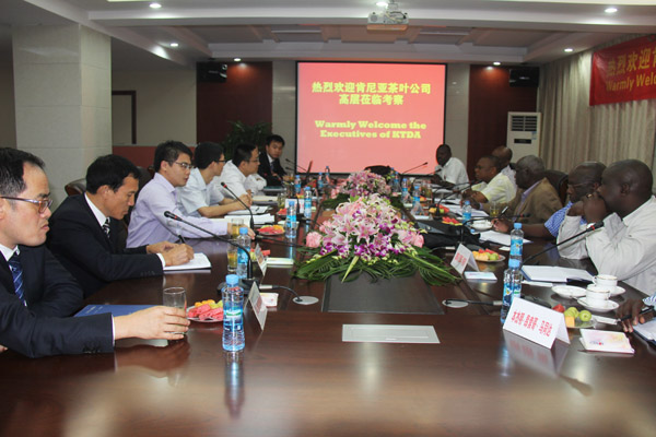2014年9月上旬,肯尼亞茶葉發(fā)展有限公司董事Philip Kibirech NG’Etich先生一行七人應(yīng)邀來我公司參觀考察,旨在加深雙方了解和建立互惠共贏的合作。總經(jīng)理徐洪良代表公司對他們的到來表示熱烈歡迎,總會計師王義生、總工程師胡鴻煌及海外公司相關(guān)負責(zé)人參加了會見并陪同肯尼亞客人參觀了公司總部各部門。