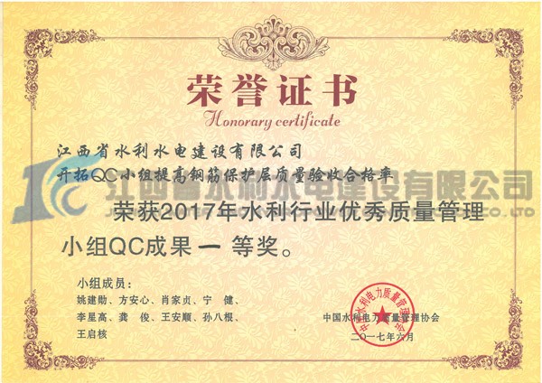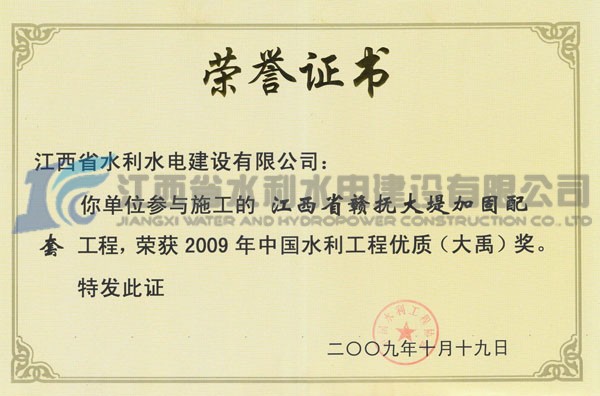金杯銀杯不如老百姓的口碑。十年來,公司始終以項目管理為核心,以過程控制為主線,以質量安全為重點,以品牌形象為抓手,努力鑄造精品工程,滿足社會需要,實現社會價值。十年來,公司共有 12項QC成果,獲省部級獎項;有 7項工法獲得省部級工法,2項科研項目研究獲贛鄱水利科技一等獎;填補了歷史空白,有力的提升了企業的核心競爭力。十年來,公司承建的贛撫大堤加固配套工程和長江大堤防洪工程榮獲“大禹獎”,數十個項目榮獲全省水利優良工程獎,5個項目被水利部評為文明工地,榮獲水利部首一批安全生產標準化施工企業和信用等級AAA企業。