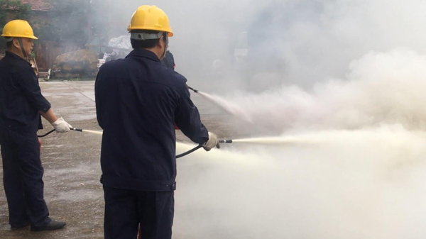 此次演練活動,得到了公司各級領導的高度重視,相關領導親臨現場進行了指導,機安公司廠區內全體員工參加演練。此次演練內容:1、火情報警;2、人員疏散;3、搶救物資;4、滅火器使用方法;5、連接室外消防給水滅火等。