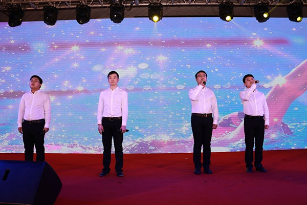 鮮紅的綢帶,迎來明媚的新春;火紅的笑臉,洋溢著節(jié)日的喜慶。隨后的文藝匯演在舞蹈《鼓舞飛揚》中拉開帷幕,舞蹈,歌曲聯(lián)唱,情景劇、詩朗誦、相聲、大合唱等文藝節(jié)目輪番上演,整場演出精彩絕倫,高潮迭起。年會中穿插了《2018年工程巡禮》、《國內(nèi)外員工拜年》視頻,豐富的表現(xiàn)形式反映了一年來公司取得的豐碩成果和公司員工在工作、生活中的點點滴滴,體現(xiàn)了江西水建人昂揚向上的精神面貌。