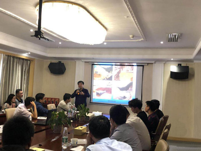 現(xiàn)場(chǎng)參觀結(jié)束后,學(xué)習(xí)團(tuán)參加了技術(shù)培訓(xùn)和經(jīng)驗(yàn)交流會(huì)。總經(jīng)理助理杜凌主持了開班儀式。總工程師胡鴻煌、項(xiàng)目副經(jīng)理李成,對(duì)洋前壩水庫(kù)的大壩總布置、大壩施工導(dǎo)流、大壩及供水管道施工技術(shù)細(xì)節(jié)等,通過文字、圖片、視頻等組成的PPT課件為學(xué)員授課,并就學(xué)員提出的問題逐一進(jìn)行了解答。