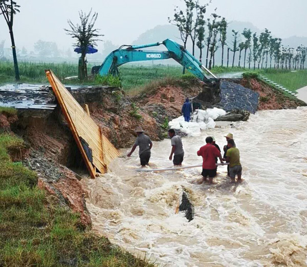集團(tuán)資訊進(jìn)入7月以來,昌江河流域普降暴雨,橋溪水河水位大漲。7月7日,公司接到業(yè)主汛情通報,已完工驗收工程多處出現(xiàn)險情;汛情就是命令,時間就是生命,公司迅速組建了一支裝備精良、經(jīng)驗豐富的專業(yè)搶險突擊隊,由副總經(jīng)理曾朝文、總經(jīng)理助理杜凌帶隊,連夜奔赴浮梁抗洪一線,組織設(shè)備、人員、材料進(jìn)場,進(jìn)行搶險救災(zāi)工作。
