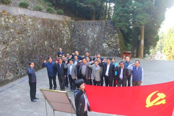 當日上午,參加學習的全體人員,懷著對革命先烈崇敬的心情來到井岡山革命烈士陵園,向革命先烈敬獻了花籃。隨后,全體黨員在革命烈士紀念堂前面對黨旗重溫了入黨誓詞,使每一名黨員再次感受到了恪守承諾、與時俱進,不忘所肩負的責任、義務和使命。全體人員還參觀了紀念堂陳列室、碑林、雕塑園、紀念碑,更深入地了解了革命烈士的生平及英勇事跡,感受到了革命英烈的不朽功績。