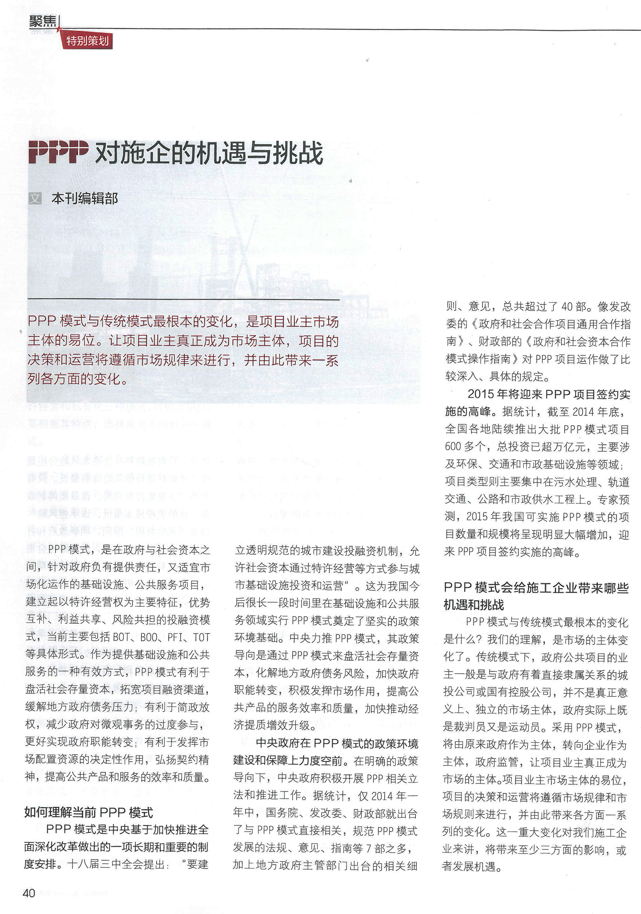 PPP對施企的機遇與挑戰